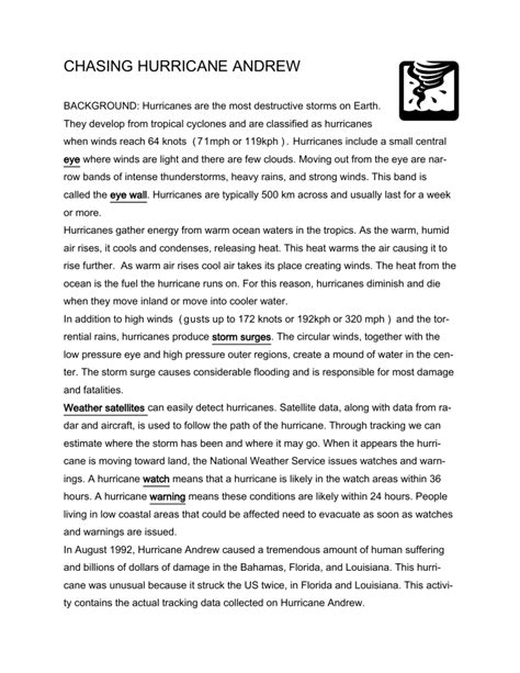 Read Chasing Hurricane Andrew Activity 19 Answers Epub By Click Button. Chasing Hurricane Andrew Activity 19 Answers it’s easy to recommend a new book category such as Novel, journal, comic, magazin, ect. You see it and you just know that the designer is also an author and understands the challenges involved with having a good book. You can easy klick for detailing book and you can read it online, even you can download it
